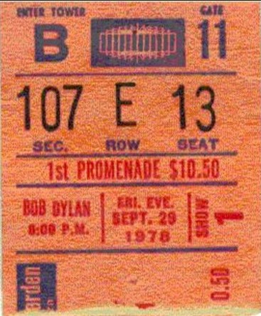That fall, the tour came to New York City, to Madison Square Garden for two nights. And it was then that I attended my first Bob Dylan concert, September 29, 1978, 46 years ago today. He was 37. I was 15. Down below is the original ticket stub I’ve saved all these years.